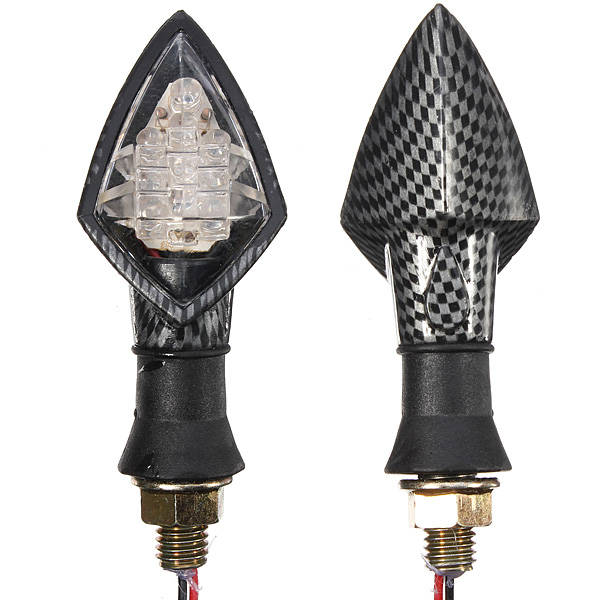Motorcycle Motorbike Turn Signal Light Indicators Lamp Carbon Description Material: Plastic Color: Carbon + Transparent LED Color: Amber LED's per Light:10 LEDs Volt:12V DC DimensionLike the picture show Connection: 2 wires Wire length: 24.5cm/9.64" Usage:Turn Signal /Indicators Lights Compatibility:Universal Fitment:Universal fit all the motorcycle Package includes: 1 x Pair of Motorcycle Turn Signal Lights