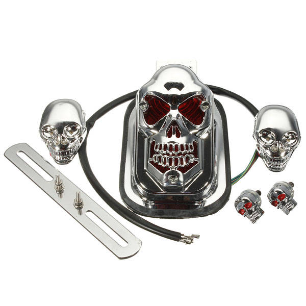 1 x Chrome Skull Tail Light 2 x Chrome Skull Turn Signal Lights 2 x Chrome Skull Screws