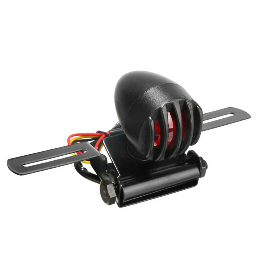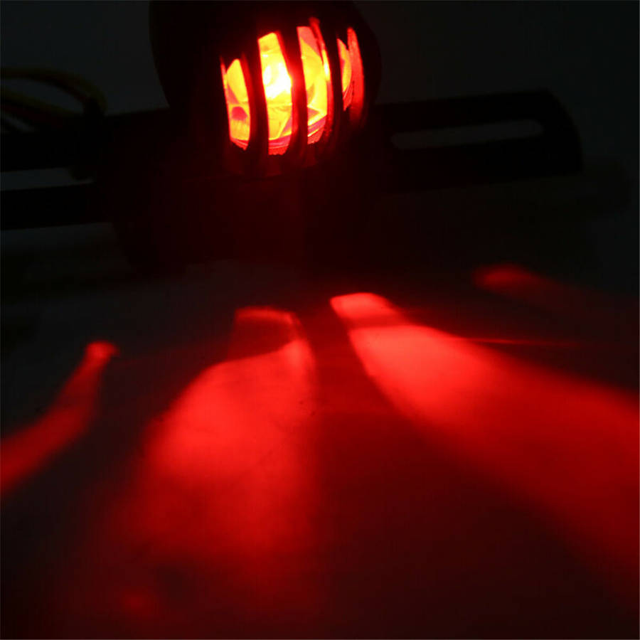 Specification: Voltage: 12v Three wire connection Material: metal Size of the lamp, approximately 7.5 x 4.5 cm (1 dia.) Length of material: approx. seven inches Color: black box Light color: red Package Included: 1 X Motorcycle Tail Light