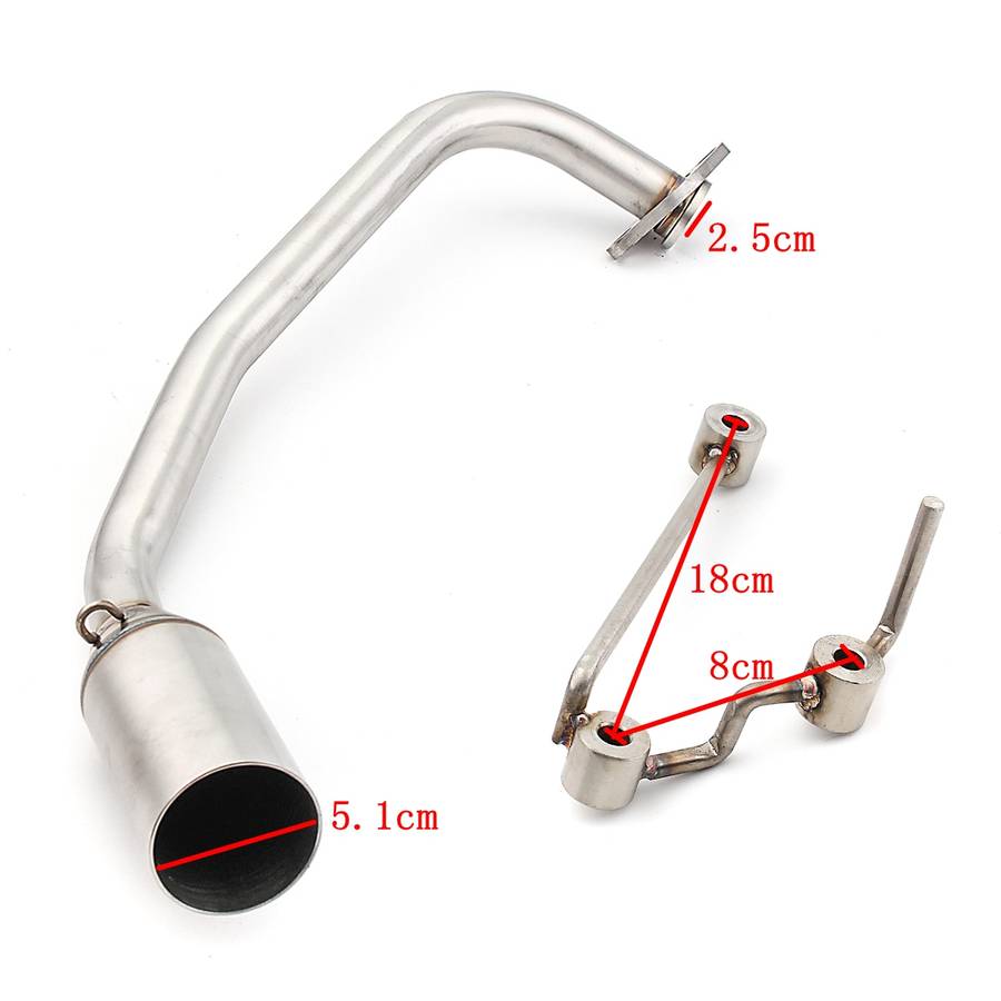 Description: Fashion design style,great accessory to dress up your rides Anti-rust, anti-corrosion and anti-sunburn Specification: Surface Color: Stainless steel Material: Stainless steel Diameter: 51mm Fitment: For Honda PCX125 150 Note: Professional Installation Recommended and installation instruction NOT Included. Package Included: 1 X Exhaust Front Pipe Kit