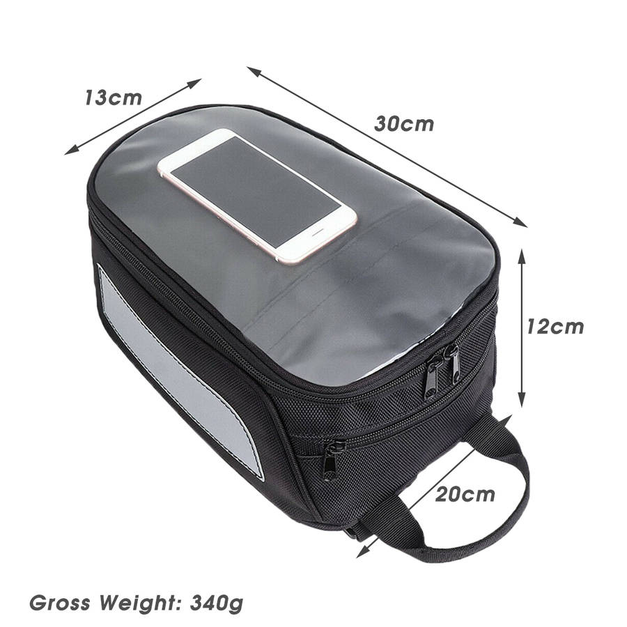 Description: 1. Can put inside the mobile on the top bag as GPS. 2. Comes with 4 strong magnetic, which helps the bag to attch on the tank tightly. 3. Also comes with the reflective lines for both side, more safety driving at night. 4. Wide range of uses, can be used as tankbag, packbag, handbag or hanging bag. 5. Waterproof and wearable. Specification: Name: Motorcycle Oil Fuel Tank Magnetic Bag Material: 1680 Oxford Cloth Color: Black Size: 30x20x12cm Compatible Model: for BMW F800GS F650CS K1200GT K1100RS R1100S R1200GS for Aprilia RS50 RS125 RSV1000R for Ducati 749 for YAMAHA MT 07 09 for YAMAHA R1 R3 R25 for KAWASAKI NINJA 400 Z 800 900 for HONDA for SUZUKI Note: 1. Please allow 1-2CM differs due to manual measurement. 2. Due to the different display and different light, the picture may not reflect the actual color of the item. Package Included: 1 X Tank Bag 1 X Shoulder Strap