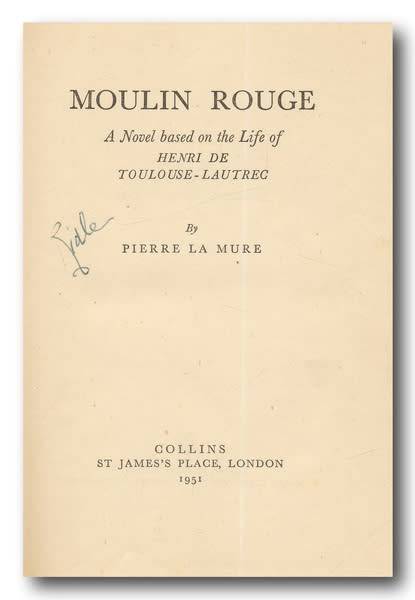 Moulin Rouge by Pierre la Mure (1st 1951) Novel based on life of Henri De Toulouse-Lautrec. A5, Hard cover, 448 pages. Cover bit worn. Book in good readable condition.