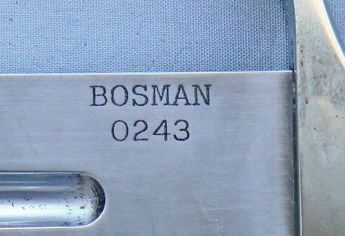 IT IS NUMBERED BOSMAN 0243, I HAVE OWNED THIS KNIFE SINCE 1985