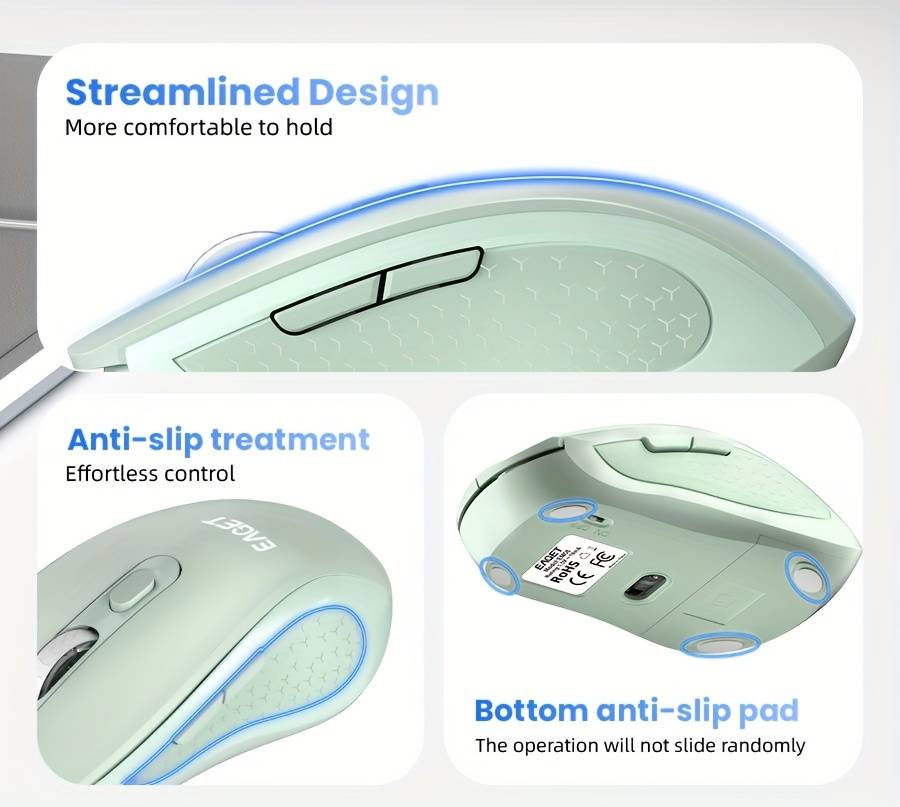 Mouse Color Green color Green EAGET Computer Wireless Mouse, Silent Mouse - USB Wireless Mouse for Laptops, 3- Wireless Property:2.4ghz wireless ᆪᄄnon-Bluetoothᆪᄅ Battery Properties:Without Battery Material:Plastic Movement Detection Technology:Optical Hand Orientation:Ambidextrous Brand:EAGET Product Charging Port:No Charging Function Power Mode:Battery Powered Operating Voltage:기36V