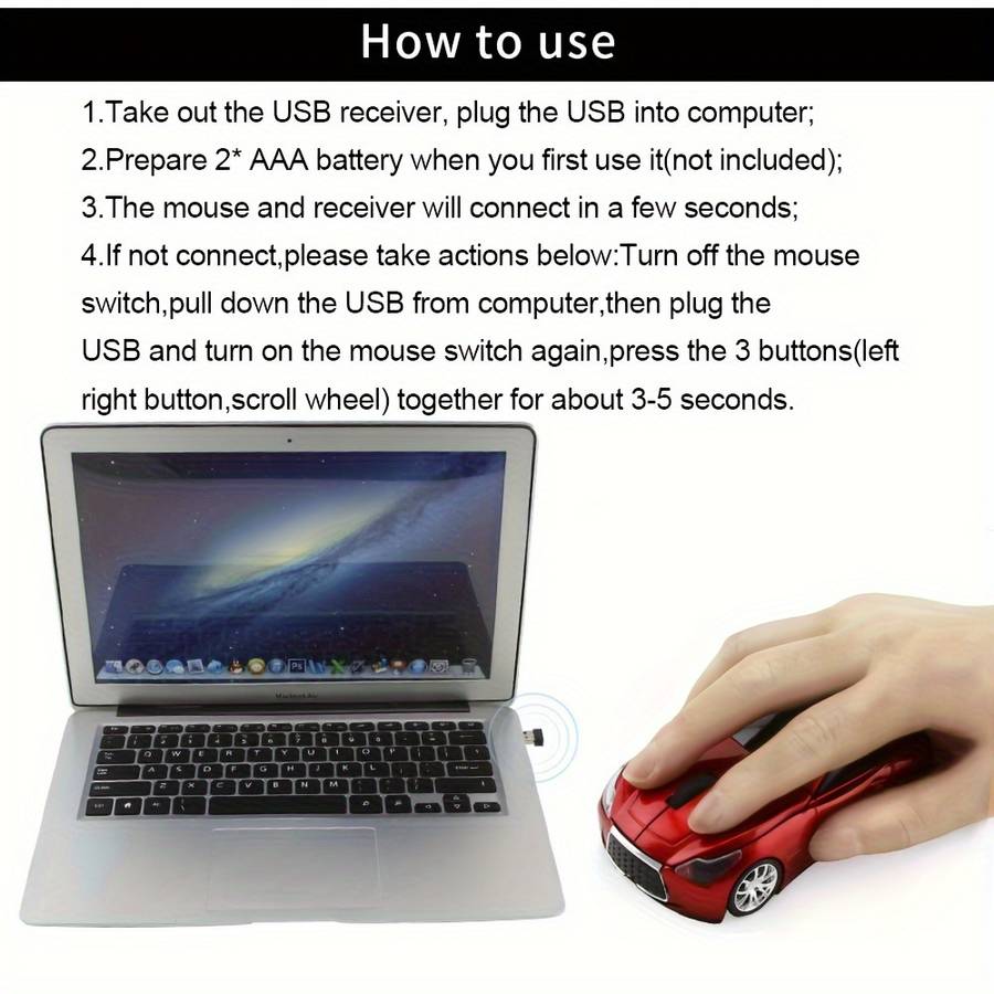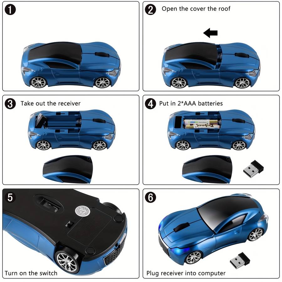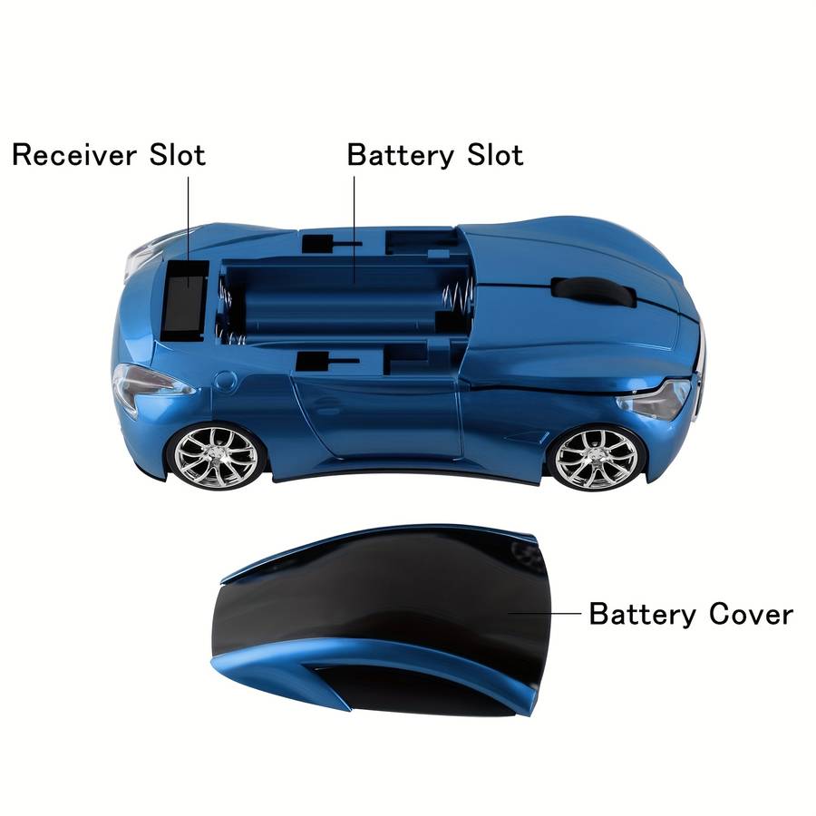 Sleek Sports Car 2.4GHz Wireless Optical Mouse with USB Receiver - Ergonomic 3-B