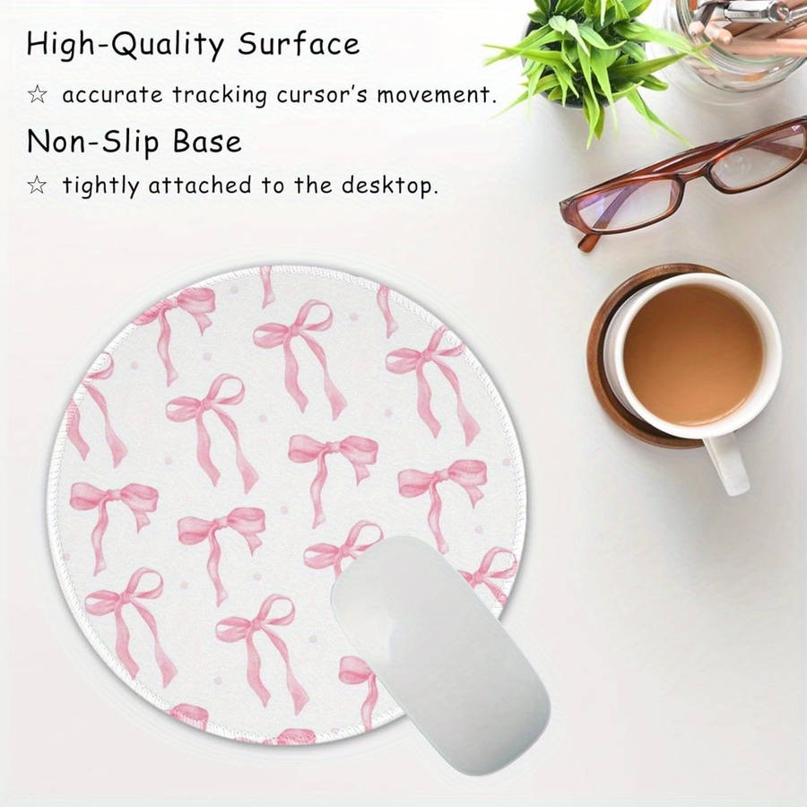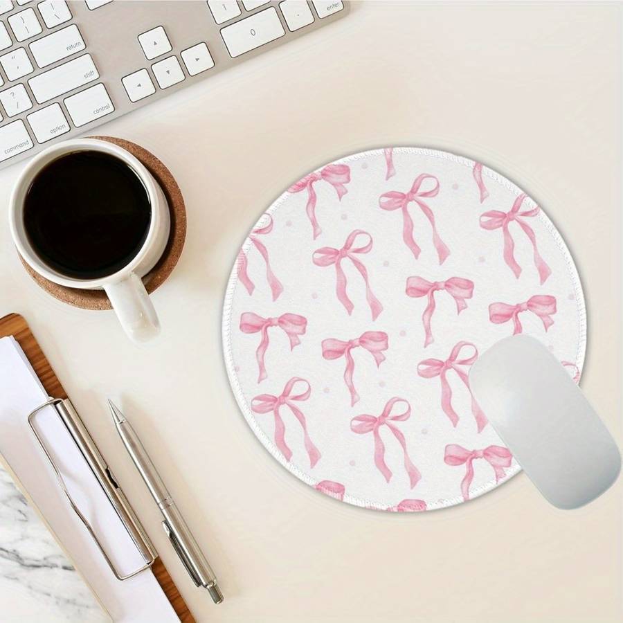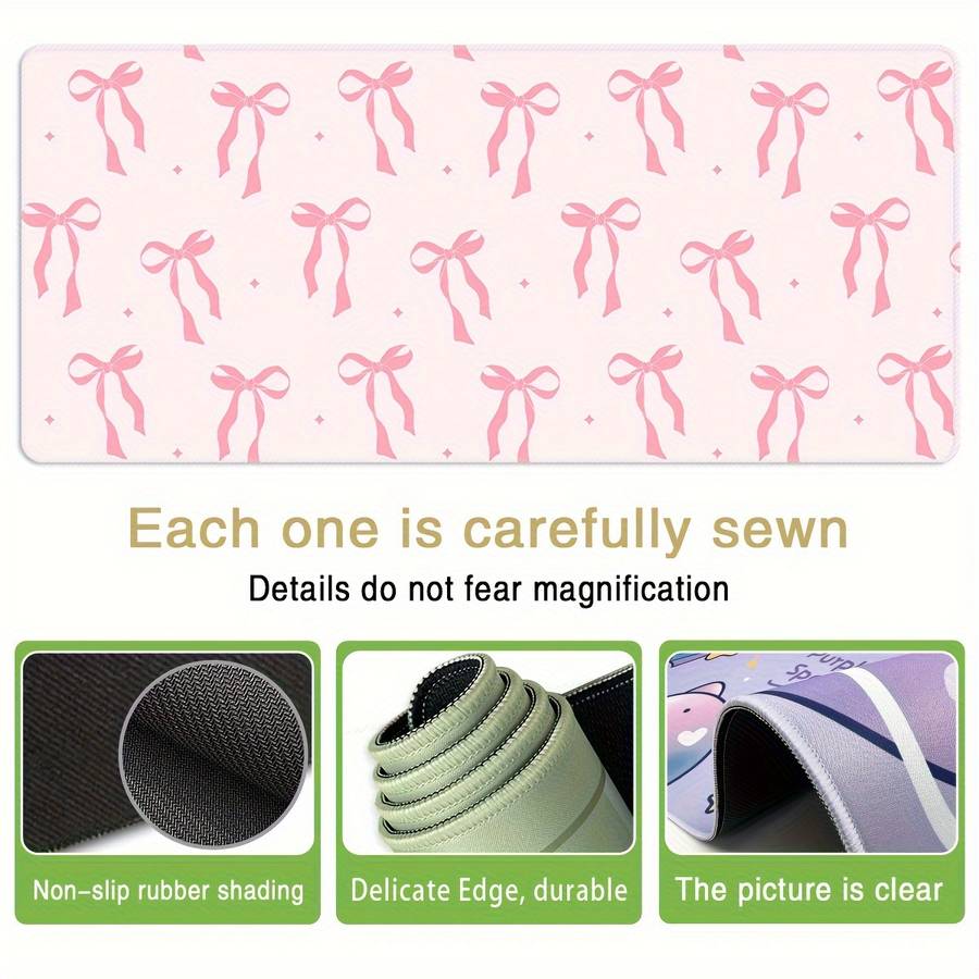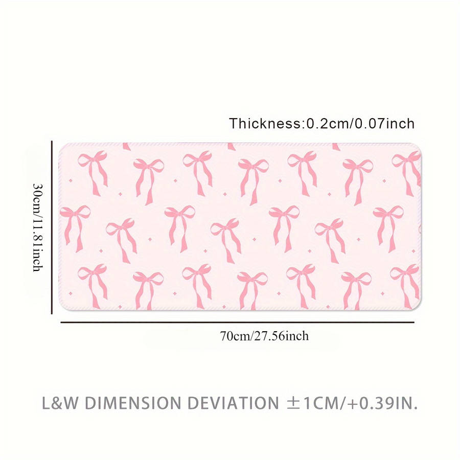Pink Bow Gaming Mouse Pad with Heart Design - Washable, Non-Slip Rubber Base, Pr