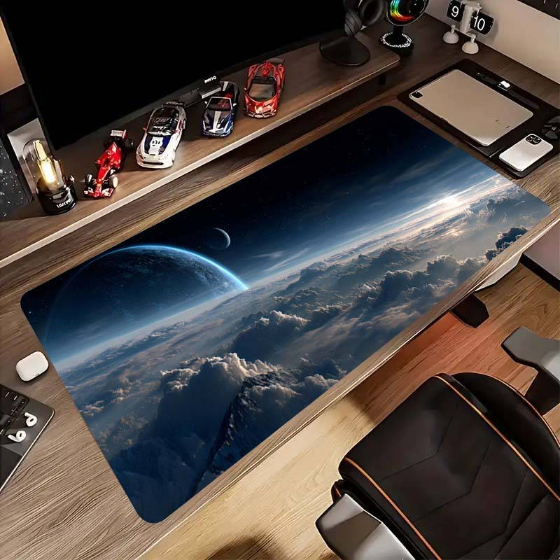1pc Extra Large Gaming & Office Desk Mat - Non-Slip Rubber Base, Space-Themed Ea