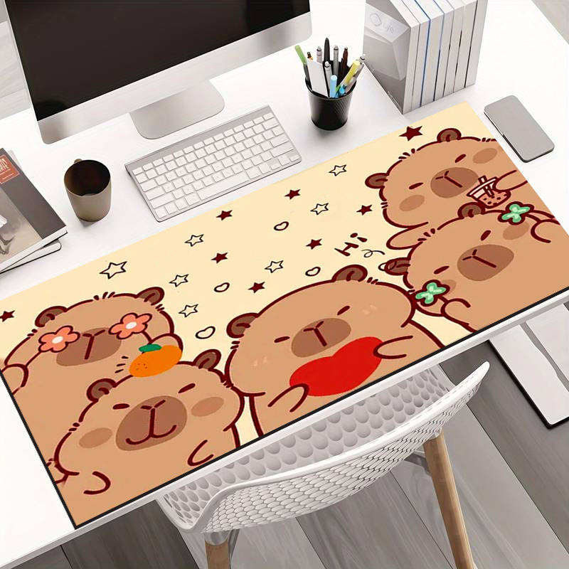1 piece of oversized gaming mouse pad with a cute capybara design made from diatomaceous earth material - features an anti-slip rubber base, perfect for gamers | office use | school work | esports activities | home decoration. An ideal gift for game enthusiasts, washable and durable in construction. Suitable for professional setups | modern desk mats | computer accessories