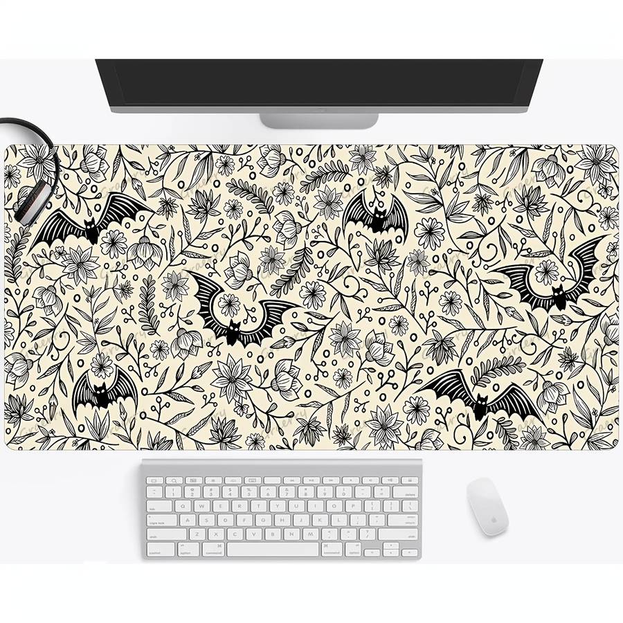 Mouse Pad Size 23.6In X 11.8In size 23.6 x 11.8 (60x30cm): 1pc Gothic Bat & Floral Large Gaming Mouse Pad - Smooth Surface, Non-Slip Rubber Material:Rubber