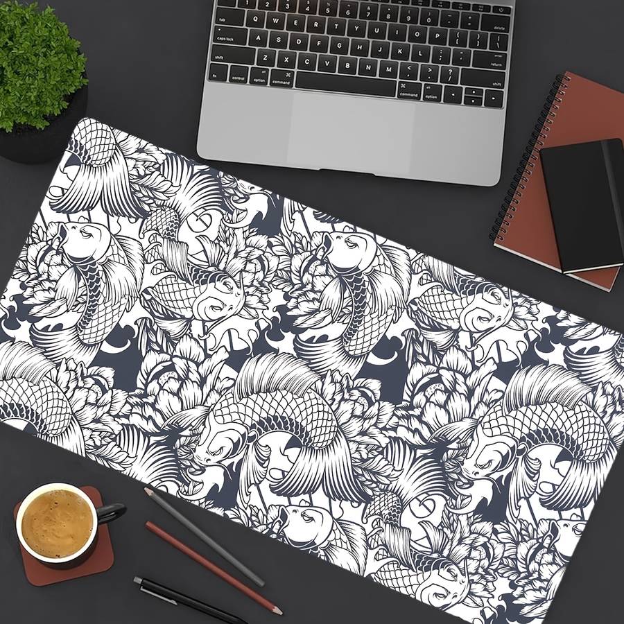 Mouse Pad Size 23.6In X 11.8In size 23.6 x 11.8 (60x30cm): 1pc Japanese Black & White Koi Fish Gaming Mouse Pad - Ultra-Smooth Stitched Edg Material:Rubber