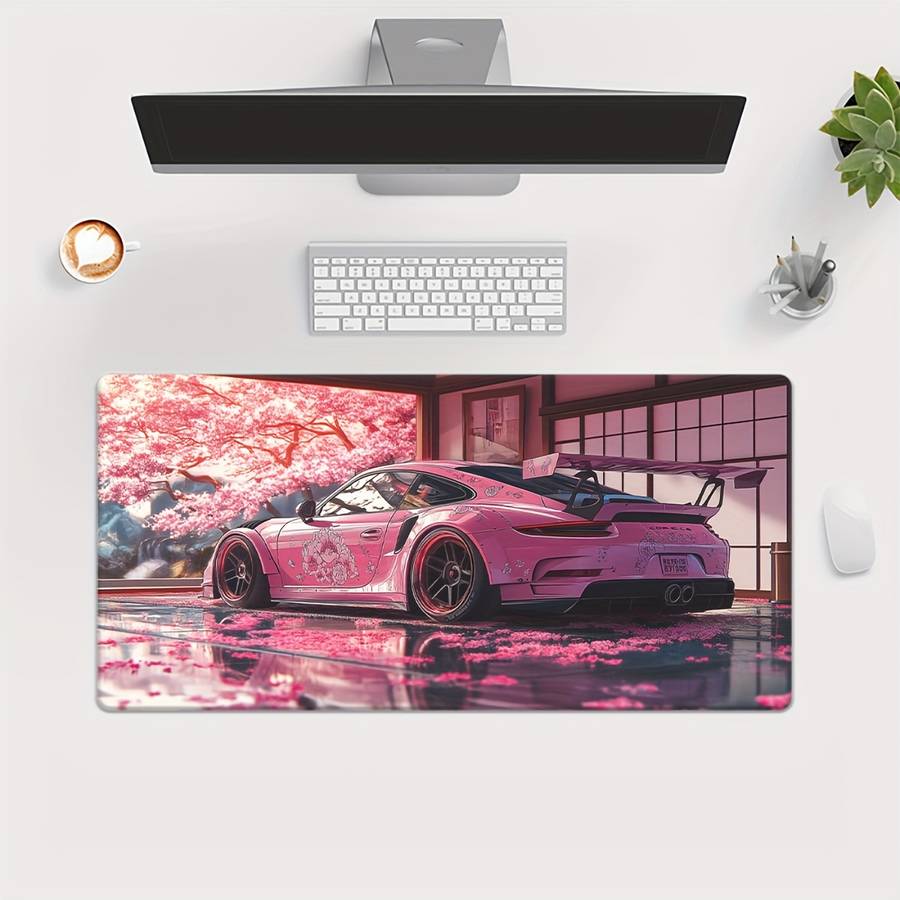 1pc Pink Sports Car Under Cherry Blossoms Art HD Printed Desk Mat - XXL Multi-Fu Material:Rubber Back Material:Rubber Major Material:Rubber Thickness:3mm Item ID:FW6193244 Origin:Guangdong,China