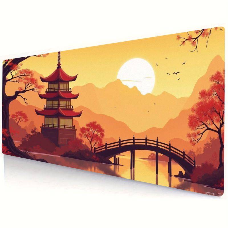 One Extra-Large Rectangular Oriental Sunset Ancient Pagoda Landscape Mouse Pad K
