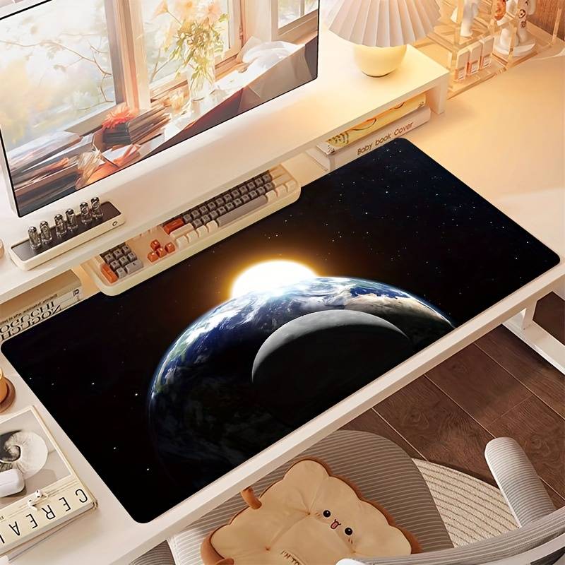 1pc Sunrise Earth & Moon Desk Mat - Vibrant HD Graphics, Non-Slip Rubber Base, D