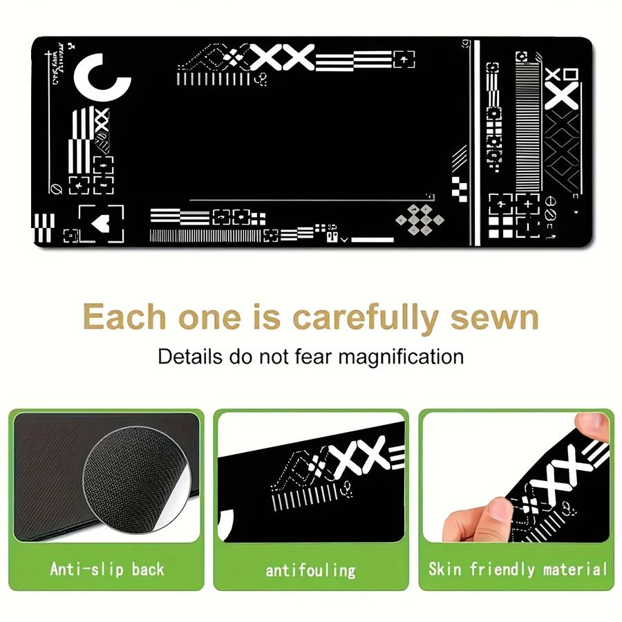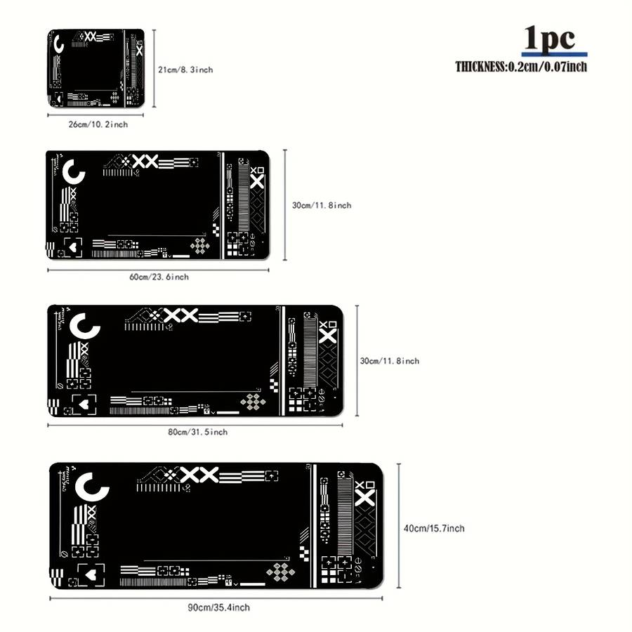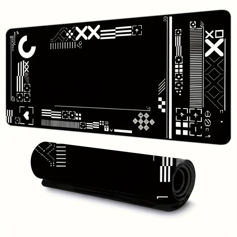Mouse Pad Size 30X60Cm size 30x60cm(11.8x23.6inch): Tech-Inspired Black & White Geometric Keyboard Mouse Pad - Non-Slip, Waterproof, Material:Rubber Special Features:Washable,Non slip