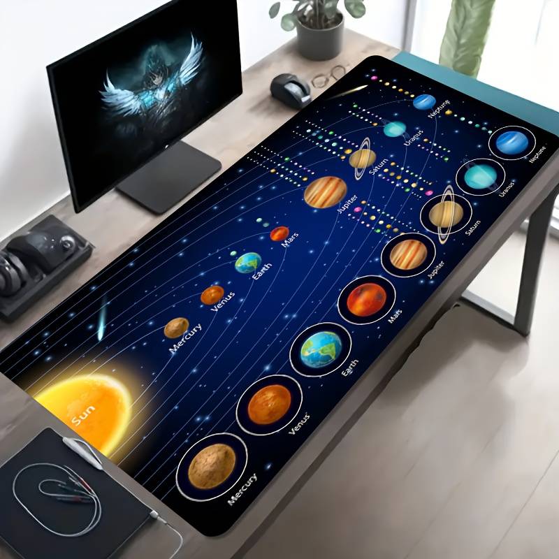1pc Large Gaming Mouse Pad with Solar System Planets Design - Non-Slip, Washable