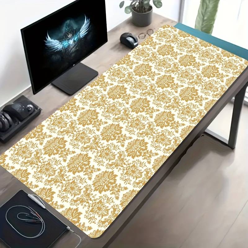 Mouse Pad Size 30X60Cm size 30x60cm(11.8x23.6inch): 1pc Large Gaming Mouse Pad with White Base and Golden European Pattern, Non-Slip Material:Rubber Special Features:Washable,Non slip