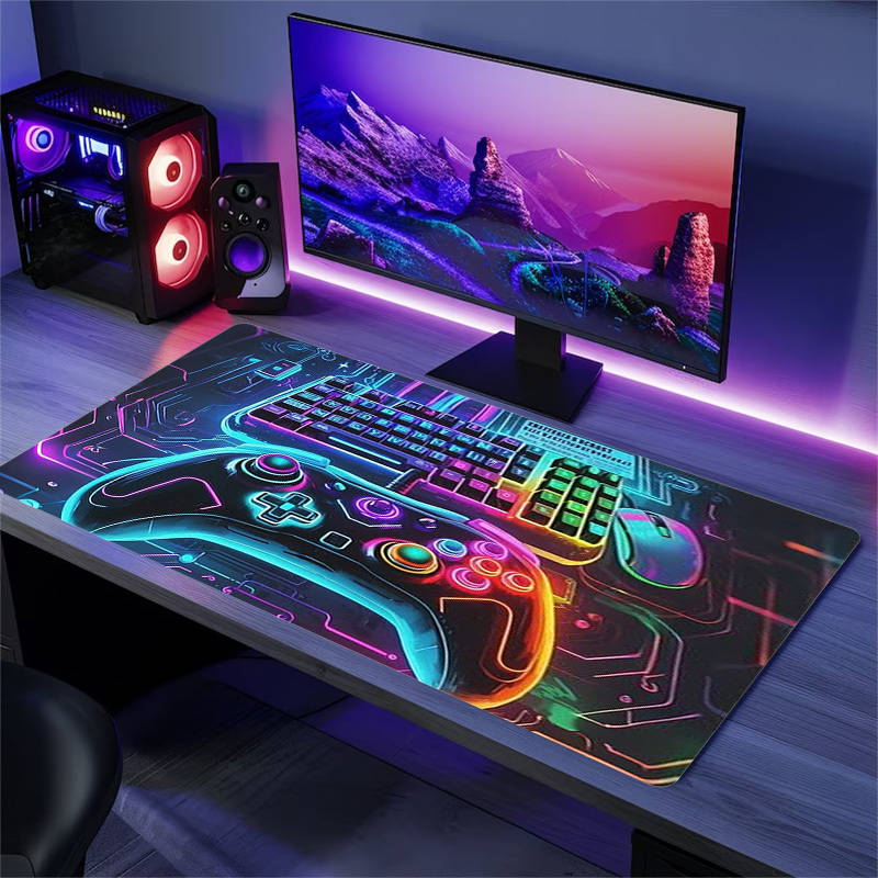 Vibrant Neon Gaming Controller Keyboard and Mouse Pad Set - Perfect for PC Gamer