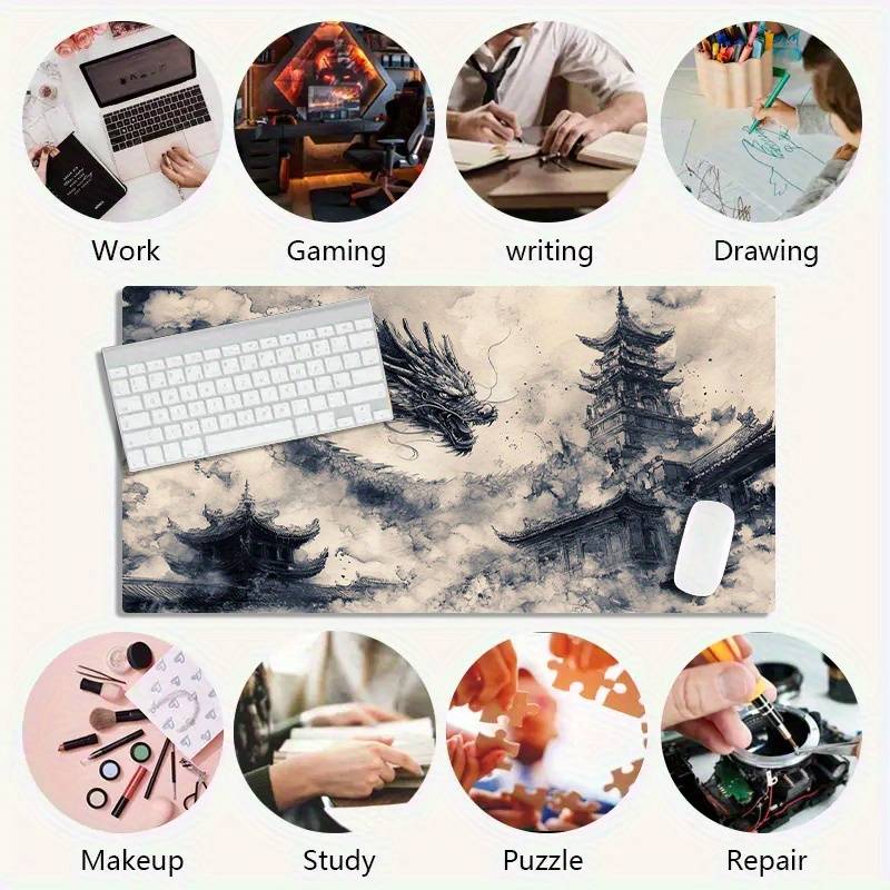 1pc Large Gaming Mouse Pad with Dragon & Ancient Chinese Architecture Design - N Material:Rubber Item Shape:Oblong Special Features:Washable,Non slip Item ID:CQ4927866 Origin:Jiangxi,China