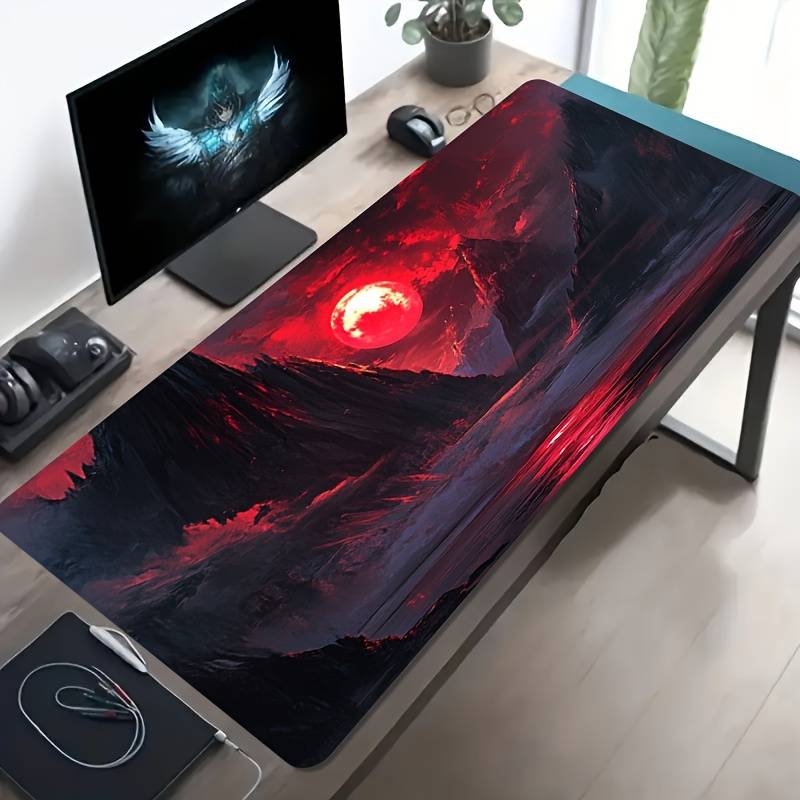 1pc Large Gaming Mouse Pad with Red Moon Mountain Landscape Design - Non-Slip Wa Material:Rubber Item Shape:Oblong Special Features:Washable,Non slip Item ID:AJ4790425 Origin:Jiangxi,China