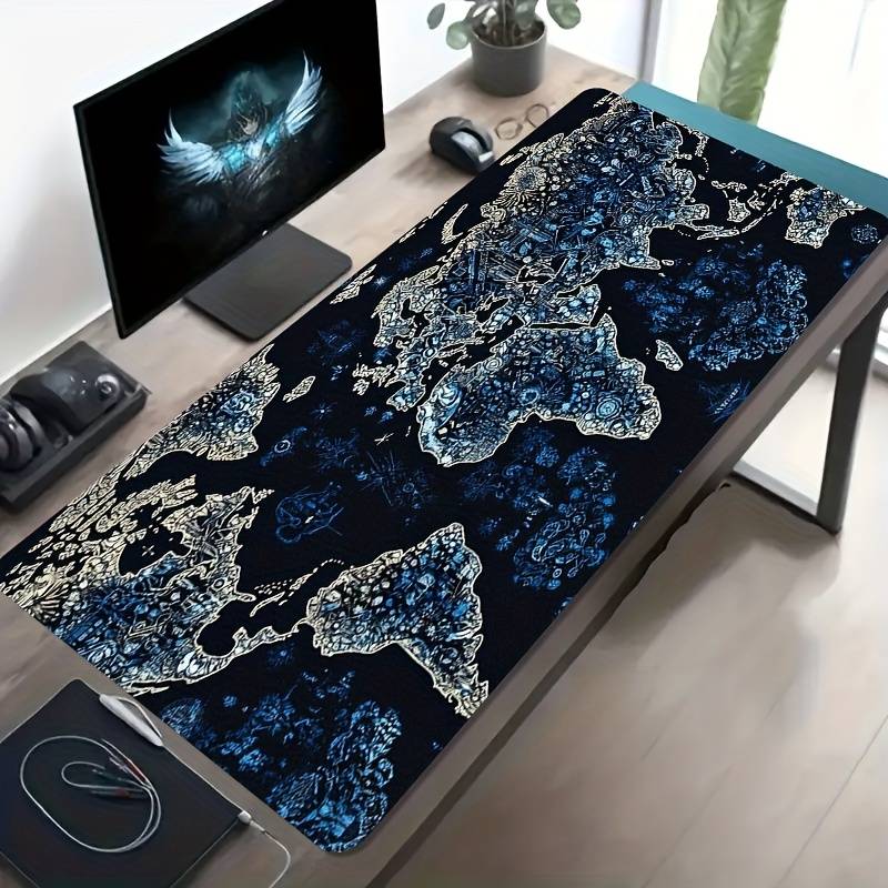 1pc Large Gaming Mouse Pad with World Map Design - Dark Blue & Golden Continent