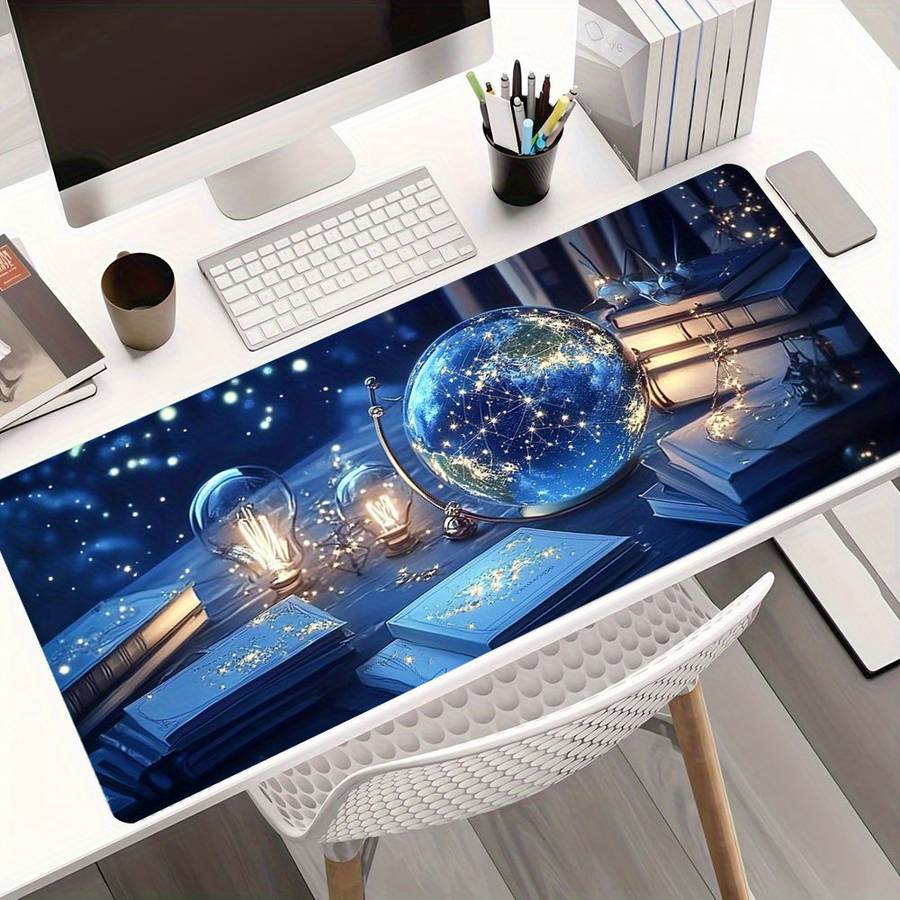 1pc Mouse Pad, Glowing Earth Globe with Light Bulbs and Books on DeskLarge Keybo