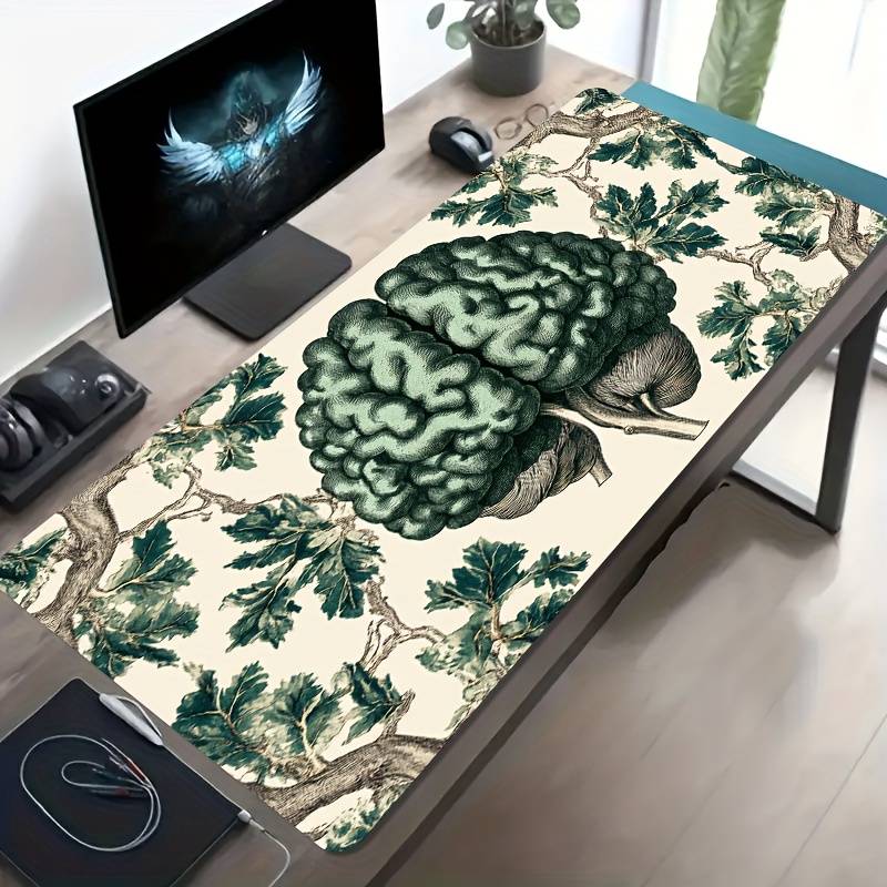1pc Large Gaming Mouse Pad with Green Brain & Symmetrical Leaf Design - Non-Slip Material:Rubber Special Features:Washable,Non slip Item ID:WT6794385 Origin:Jiangxi,China