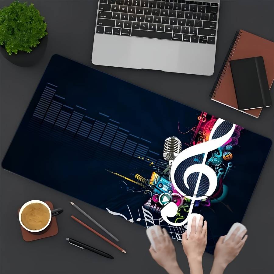 1PC Music Notes Design Mouse Pad, Non-Slip Rubber Base, Washable Desk Mat, High-