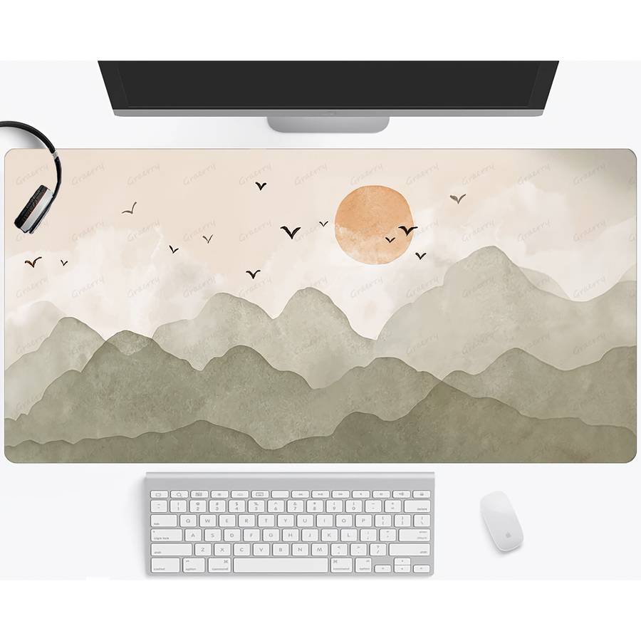 Mouse Pad Size 31.5In X 11.8In size 31.5 x 11.8 (80x30cm): 1pc Nature Minimalist Boho Sage Green & Beige Aesthetic Large Gaming Mouse Pad - Material:Rubber