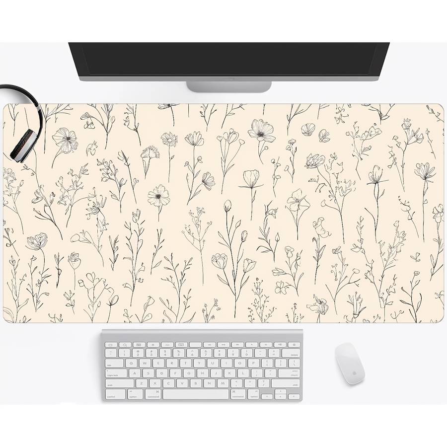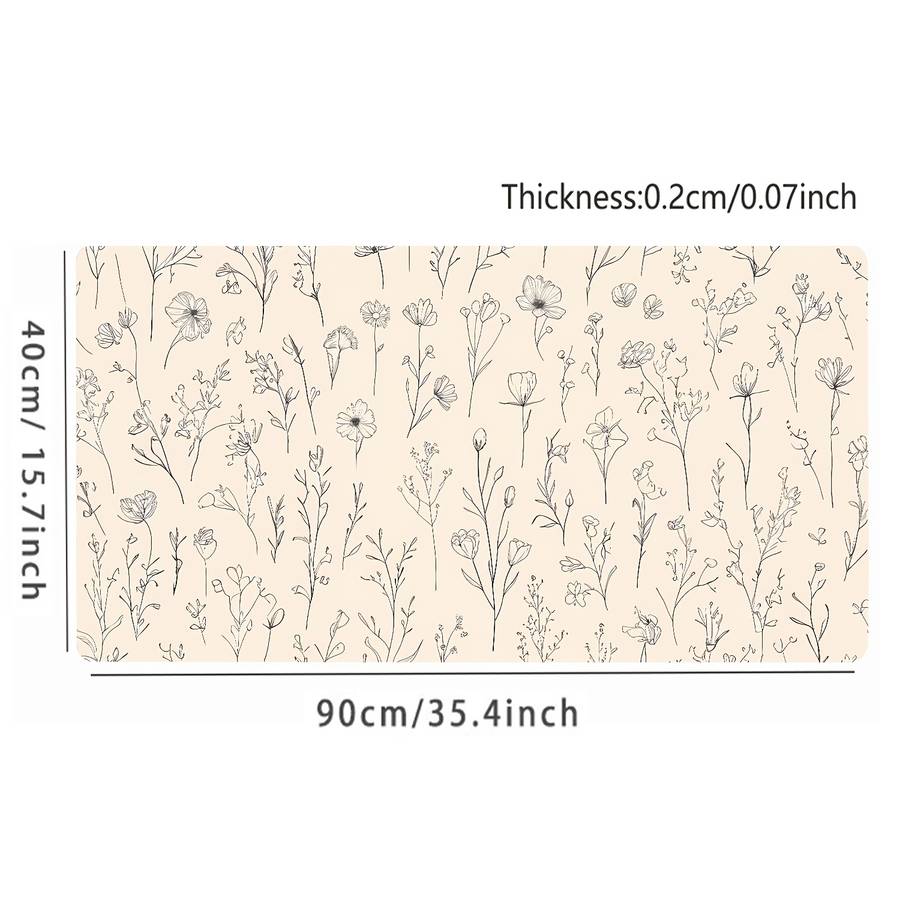 Mouse Pad Size 31.5In X 11.8In size 31.5 x 11.8 (80x30cm): 1pc Large Beige Boho Floral Gaming & Office Desk Mat - Non-Slip Rubber Base, Sti Material:Rubber