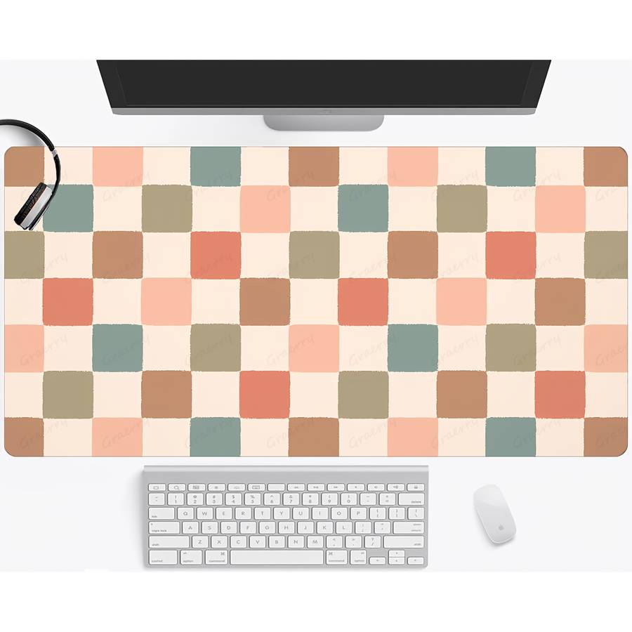 Mouse Pad Size 35.4In X 15.7In size 35.4 x 15.7 (90x40cm): 1pc Large Boho Checkerboard Gaming Mouse Pad & Desk Mat - Beige Pastel Non-Slip Material:Rubber