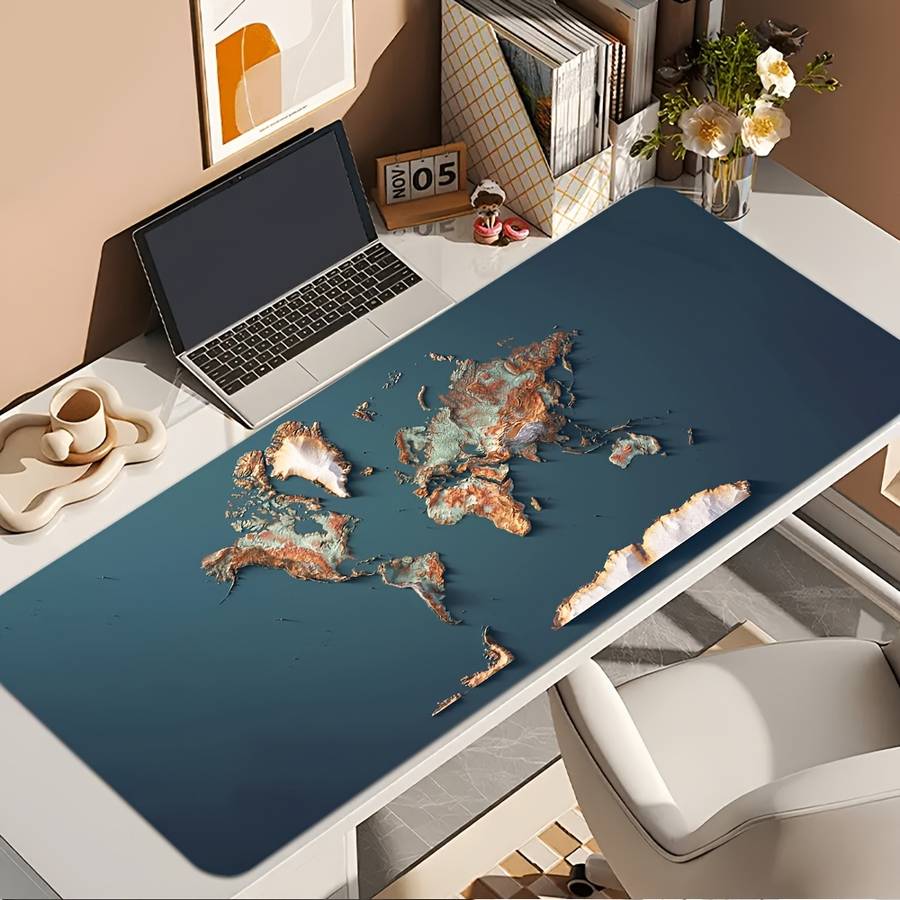 1pc Simplified World Map Gaming Mouse Pad - Non-Slip Rubber Base, Washable Desk