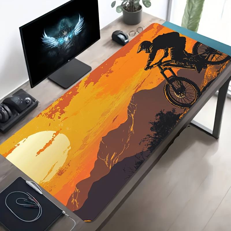 1pc Large Gaming Mouse Pad with Mountain Biking Sunset Design - Non-Slip Washabl