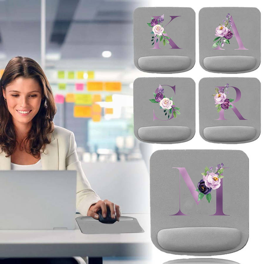 1pc Ergonomic Wrist Support Mouse Pad with Floral Letter Design - Square Gaming