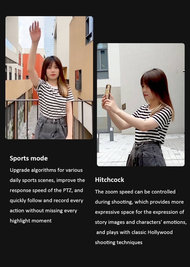 6. Hitchcock: The zoom speed can be controlled during shooting, which provides more space for the expression of story pictures and characters` emotions, and plays with classic for Hollywood shooting techniques