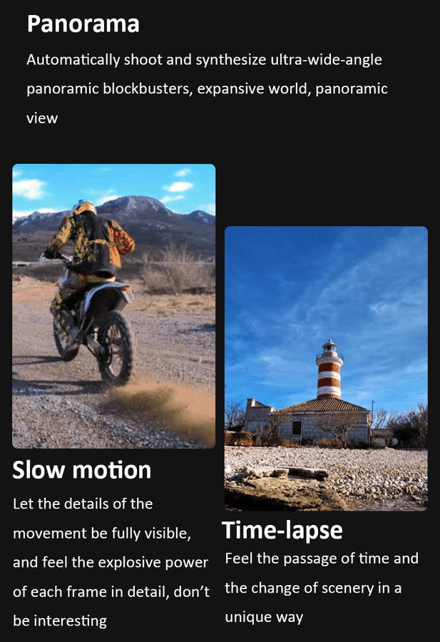 1. Panoramic shooting: Automatically shoot and synthesize ultra-wide-angle panoramic blockbusters, expansive world, panoramic view