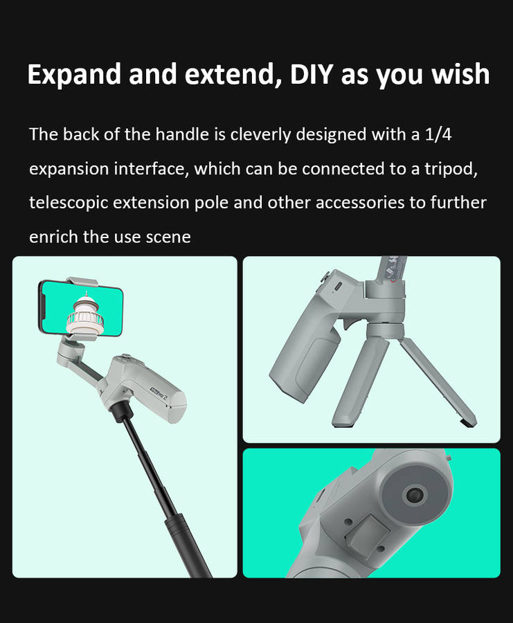 Expand and extend, DIY at will: 1/4 expansion interface is cleverly designed on the back of the handle, which can be connected with accessories such as a tripod, telescopic extension pole, and further enrich the use scene