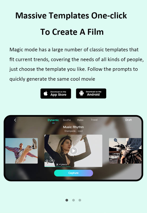 Massive templates One-click to create a film: Magic mode has a large number of classic templates that fit current trends, covering the needs of all kinds of people, just choose the template you like. Follow the prompts to quickly generate the same cool movie