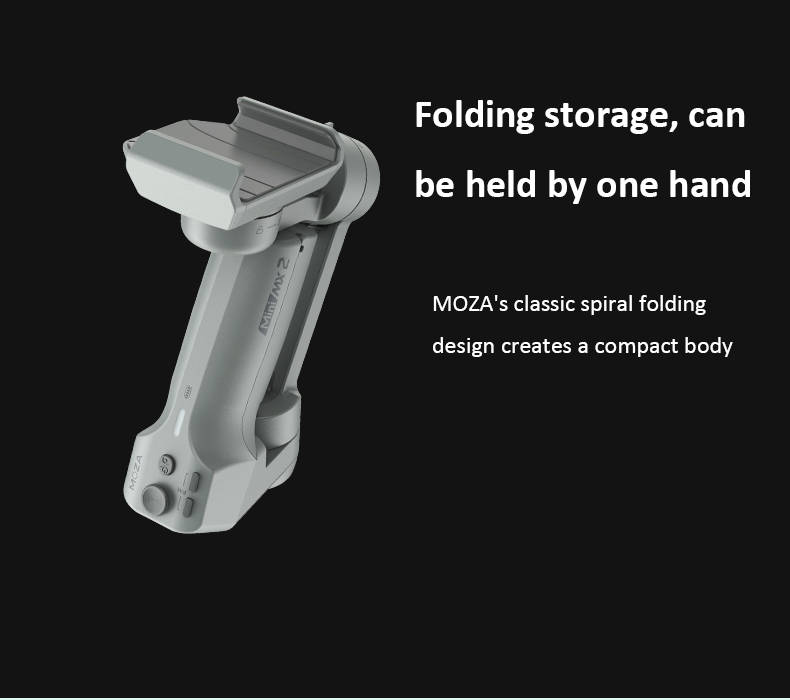 Folding and storing, you can hold it with one hand: MOZA`s classic spiral folding design creates a compact body