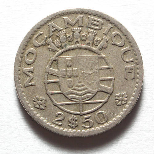 Mozambique 2.5 Escudos x 5 coins 1940s and 50s