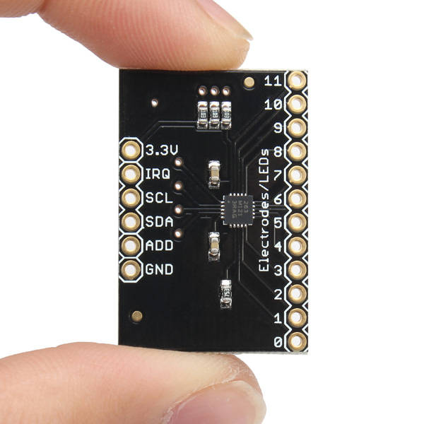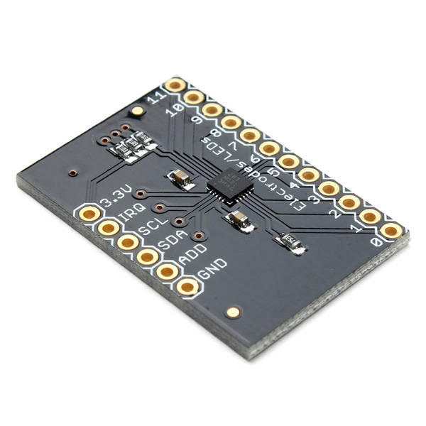 MPR121 Breakout V12 Proximity Capacitive Touch Sensor Module Description: This is a breakout board for Freescale's MPR121QR2. The MPR121 is a capacitive touch sensor controller driven by an I2C interface. The chip can control up to twelve individual electrodes, as well as a simulated thirteenth electrode. The MPR121 also features eight LED driving pins. When these pins are not configured as electrodes, they may be used to drive LEDs. There a four jumpers on the bottom of the board, all of which are set (closed) by default. An address jumper ties the ADD pin to ground, meaning the default I2C address of the chip will be 0x5A. If you need to change the address of the chip (by shorting ADD to a different pin), make sure you open the jumper first. Jumpers also connect SDA, SCL and the interrupt pin to 10k pull-up resistors. If you don't require the pull-up resistors you can open the jumpers by cutting the trace connecting them. There is no regulation on the board, so the voltage supplied should be between 2.5 and 3.6VDC. The VREG pin is connected through a 0.1uF capacitor to ground, which means, unless you modify the board, you can't operate the MPR121 in low-supply voltage mode (1.71-2.75VDC). Package included: 1 x MPR121 Breakout V12 Proximity Capacitive Touch Sensor Module
