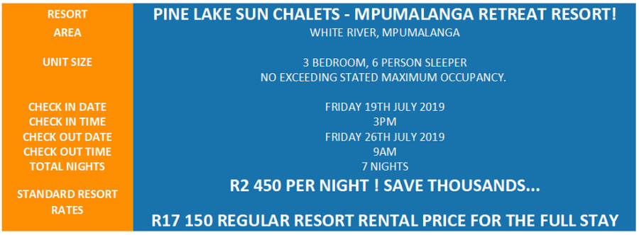 Pine Lake Resort presents the perfect blend of stunning Mpumalanga scenery, private self-catering and laid-back holiday atmosphere.
