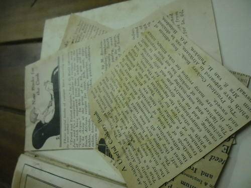 With newspaper clippings of reviews of similar cook books and card with gift inscription from Georgie to Mrs Johan Swart on Audreys birthday.