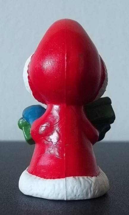 Up for sale is an original, vintage Mrs. Claus Christmas Smurfette made in 1981. She has MADE IN HONG KONG, Schleich, and Peyo 1981 markings.