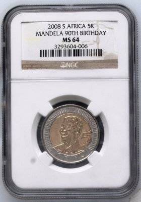 MS64 2008 Mandela Birthday R5 Coin, Certified and Slabbed By NGC, SCARCE GRADE !!