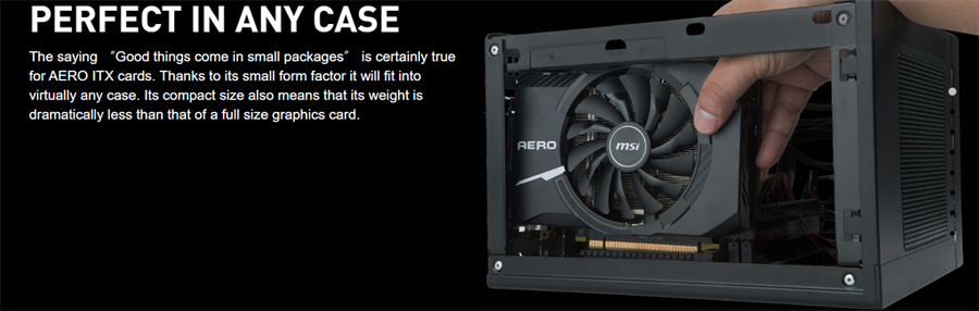 MSI Nvidia GeForce GT 1030 Aero ITX Graphics Card - 2GB GDDR4 64bit Memory, PCI Express 3.0 x16 bus interface, Core Clocks 1189 MHz / 1430 MHz, HDMI and SL-DVI-D, Retail Box , 2 year Limited warranty