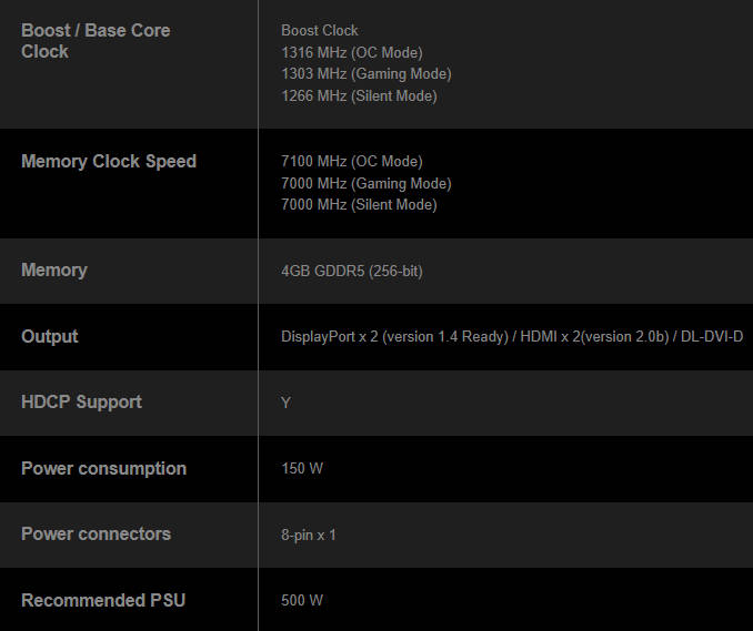 Full overview and specs can be found here: https://www.msi.com/Graphics-card/Radeon-RX-480-GAMING-X-4G.html#hero-overview
