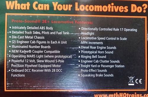 Three of the side steps on the loco have been re-glued in place and unfortunately it has not been done very well (See last two photos). Other than this, the loco is in very good condition and runs well. It is digital with all the sounds, including cab chatter and freight yard sounds. Complete with box and papers. Box has minor damage.