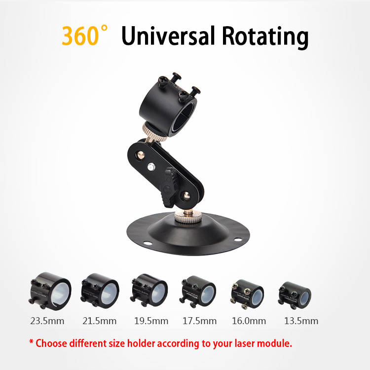 Specification: Product Name: Laser Module Mount Holder Material: Iron, Aluminum Loading Capacity: 5kg Height: 83mm Base Diameter: 47mm Weight: 85g Fits for 13.5mm, 16.0mm, 17.5mm, 19.5mm, 21.5mm, 23.5mm diameter of laser module Features: 1. Good thermal conductivity and flexibility, so that laser products can be installed on any vertical or horizontal surface, and fine tuning in any three-dimensional space to reach the best use effect. 2. Fixing Type: 4 screws fix the laser to prevent it from slipping 3. Adjustable Height: Manually left or right to adjust the height without use of any tools. 4. Turnable Ball: Control the top bracket to rotate at any angle you want. 5. Call be mounted on wall, ceiling surface, adjust the angle to fix your work. Package Included: 1 x Laser Module Mount Holder