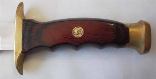 We have on offer this Muel Bowie Knife. Pressed Coral Wood Handle.