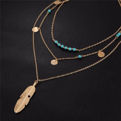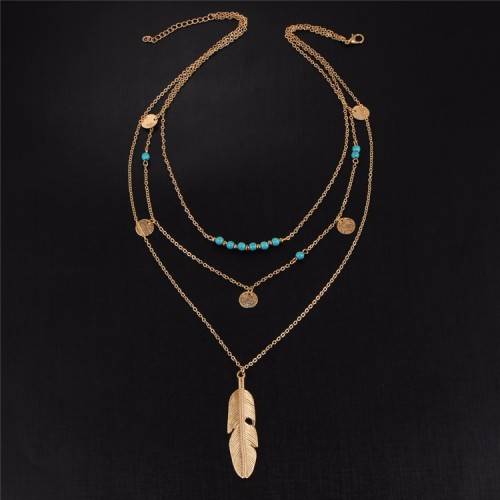 Multi Layer Feather Gold Color Tassel Infinity Necklace